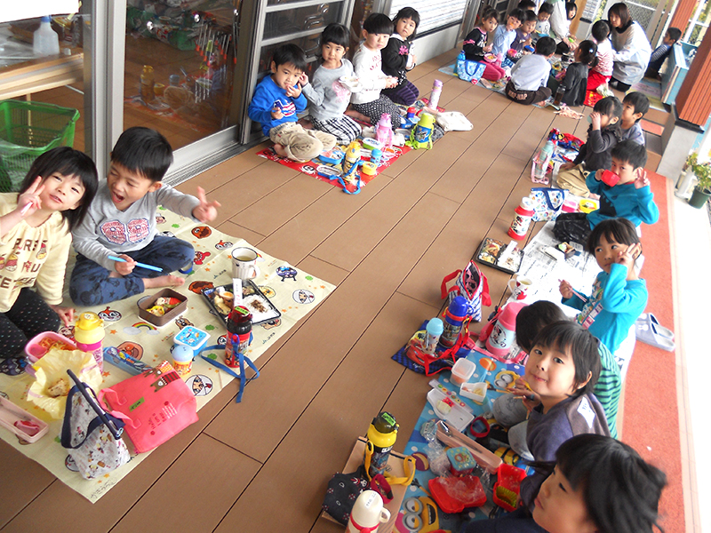 子どもたちが1番楽しみにしている日です。お天気のよい日は近くの公園で食べます。